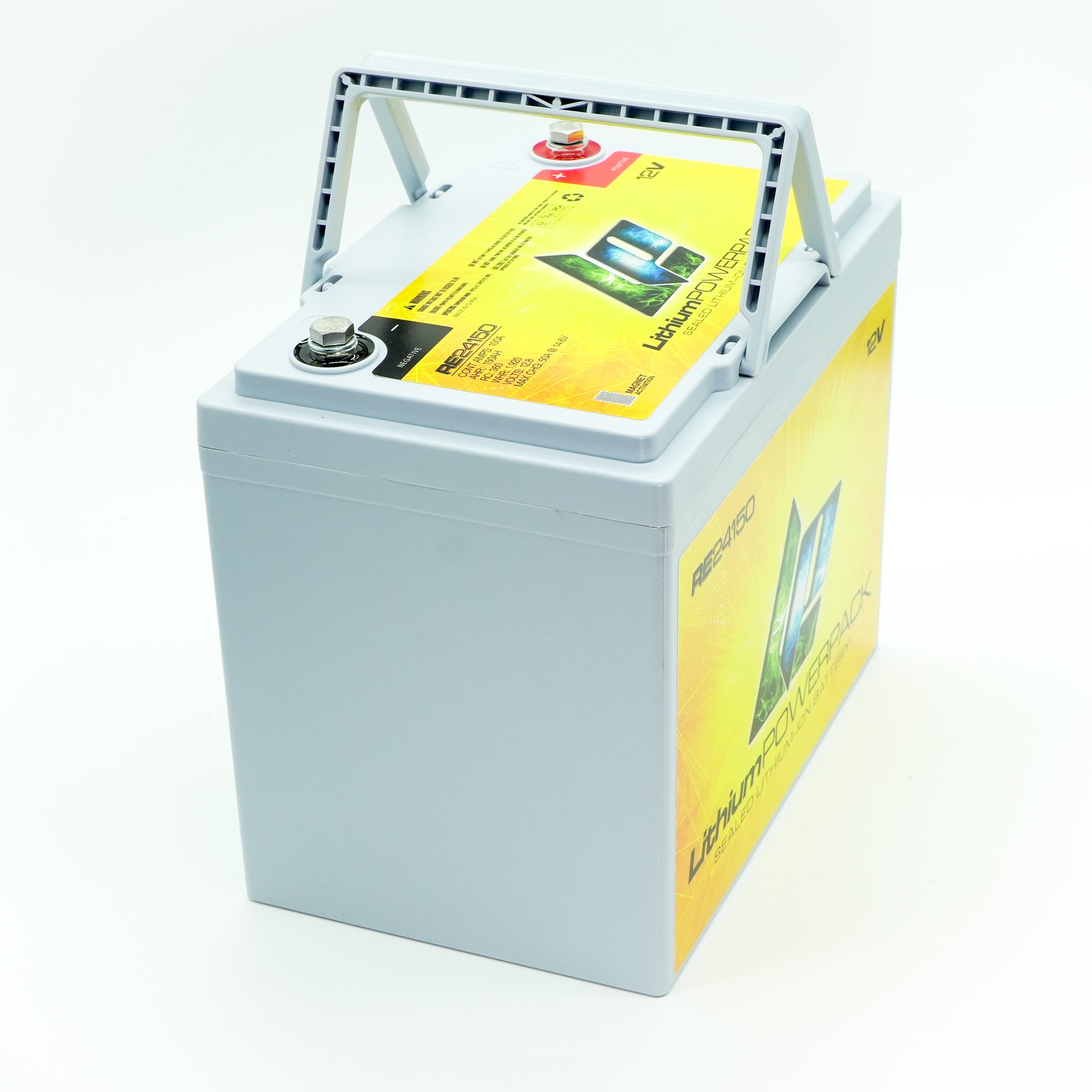 RE24150 12.8V 150Ah Lithium Ion Battery is a drop in replacement for BCI group 24 lead acid batteries for off-grid energy storage in RV and home micro-grid. Featuring 360 reserve minutes of energy (1,920Whr), it is more energy than any AGM or LFP battery on the market in a standard Group 24 case. (10.25" L x 6.61" W x 8.24" T)
